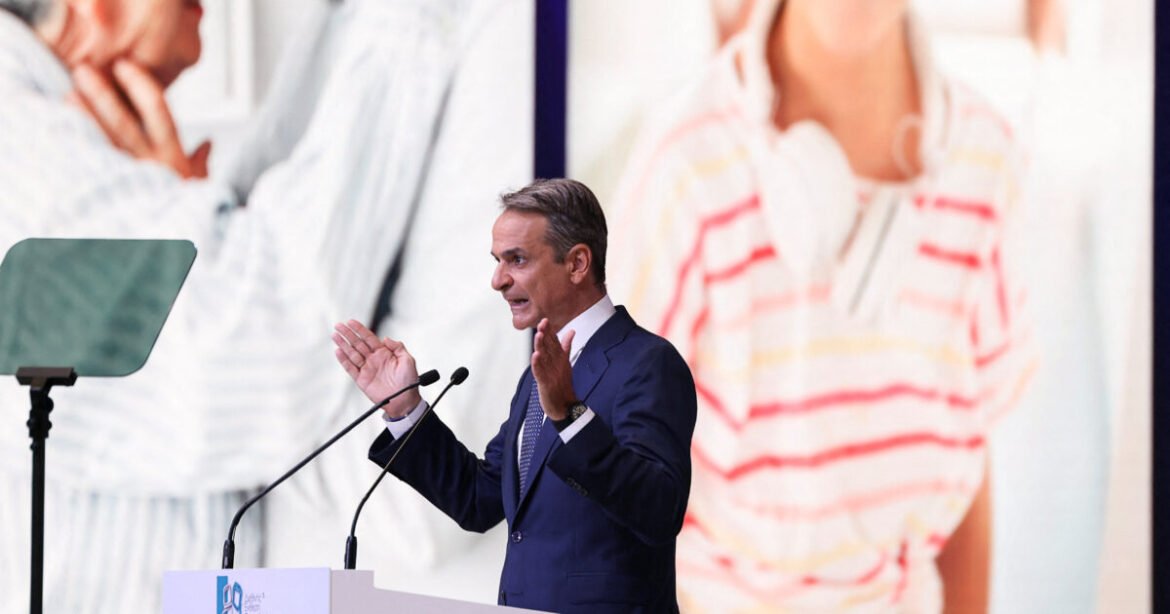 Greek Prime Minister Kyriakos Mitsotakis delivers an annual economic policy speech, at the International Fair of Thessaloniki, in Thessaloniki, Greece, September 6, 2025. REUTERS/Alexandros Avramidis